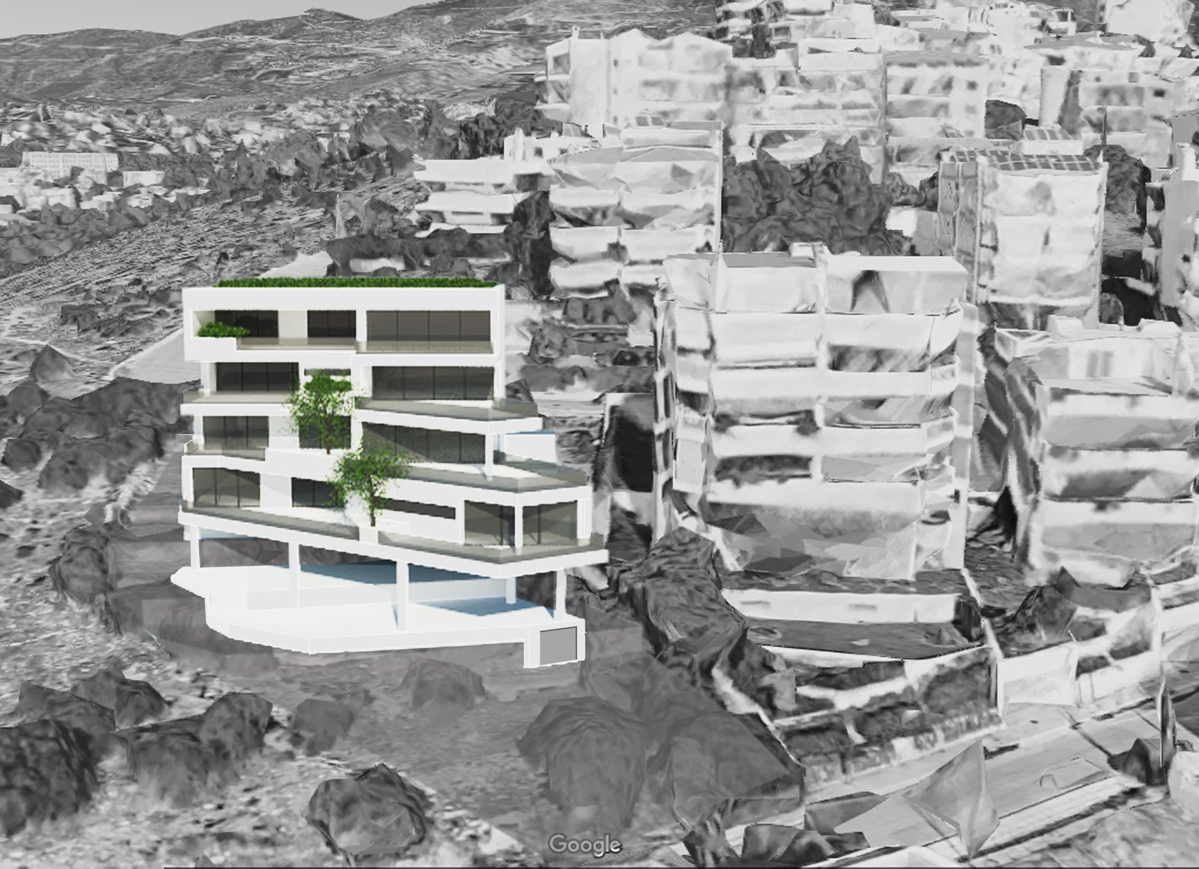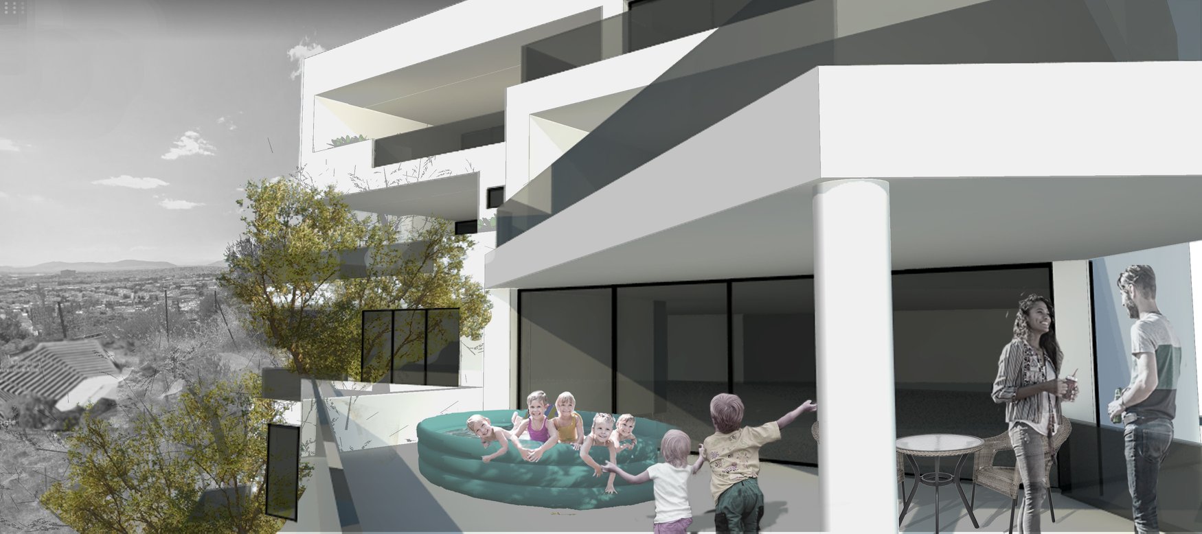 Πρόταση – concept design για την ανάπτυξης ακινήτου στο Πάτημα Βριλησσίων. Έμπνευση για την προτεινόμενη λύση αποτέλεσε η ιδιαίτερη θέση του ακινήτου, και συγκεκριμένα η απρόσκοπτη αμφιθεατρική θέα όλου το λεκανοπεδίου που διαθέτει. Κυρίαρχα στοιχεία του κτιριακού σχεδιασμού, εμπνευσμένα από τη θέα του ακινήτου αλλά και τις βασικές αρχές βιοκλιματικού σχεδιασμού, αποτελούν τα μεγάλα ανοίγματα προς το νότο, οι πλούσιοι εξώστες με τα υάλινα στηθαία σε όλες τι στάθμες και η πρόβλεψη βλάστησης τόσο στο δώμα όσο και στα υπόλοιπα επίπεδα του κτιρίου. Σημαντικό ρόλο στο σχεδιασμό του κτιρίου έπαιξε επίσης η πρόθεση για ομαλή ένταξη του κτίσματος στο οικόπεδο, με την ιδιαίτερη μορφολογία του και με βασικά χαρακτηριστικά το έντονο ανάγλυφο (κλίσεις πάνω από 20%) και το πρόσωπο σε δύο οδικούς άξονες.